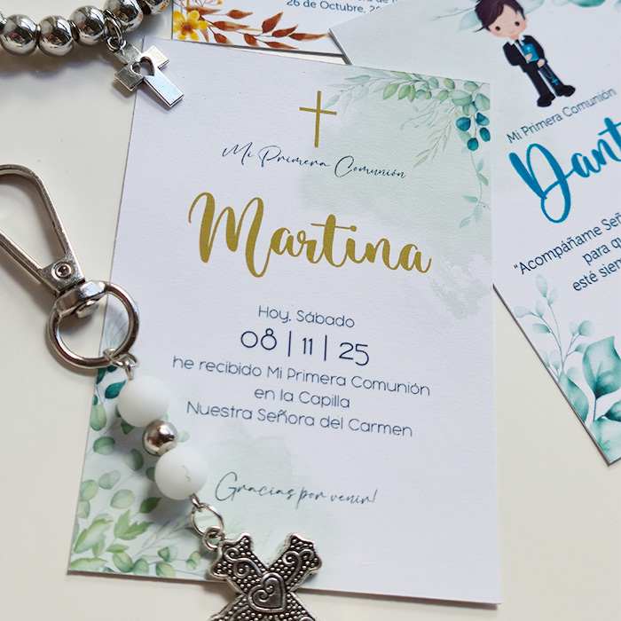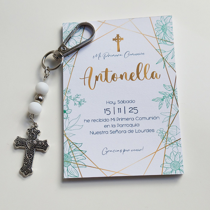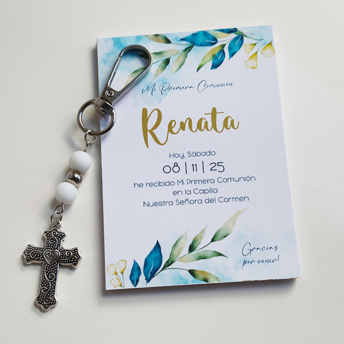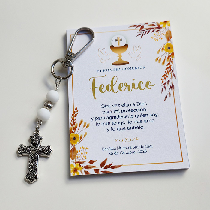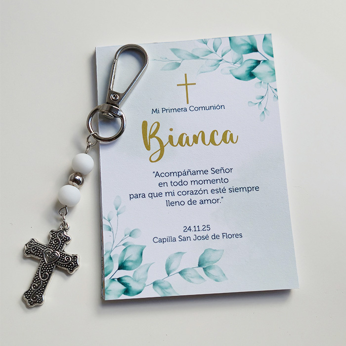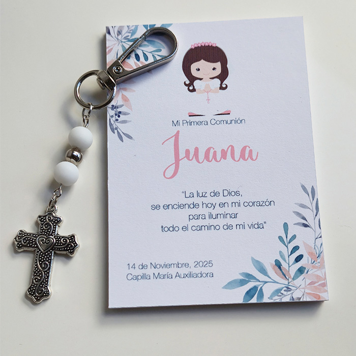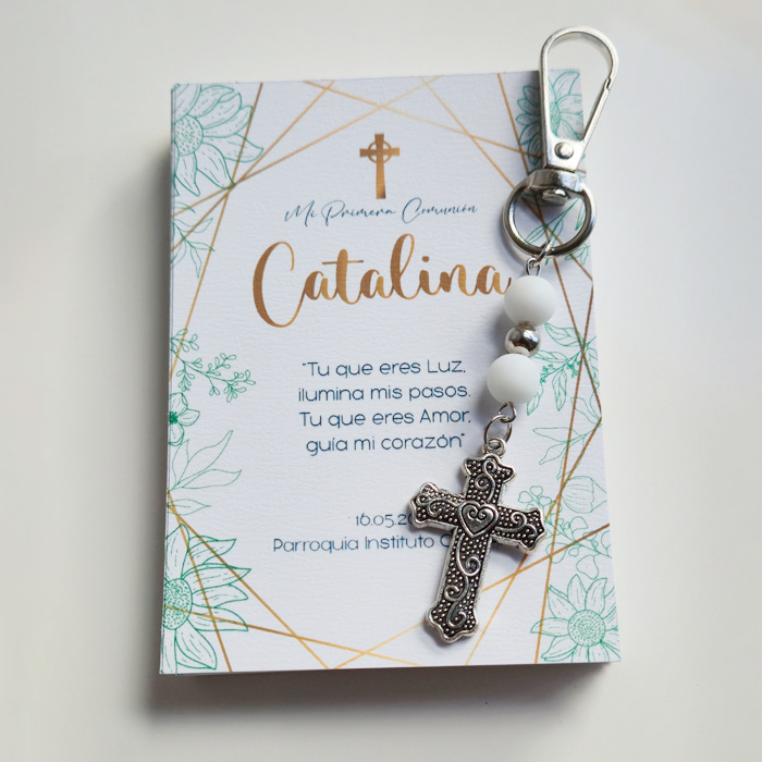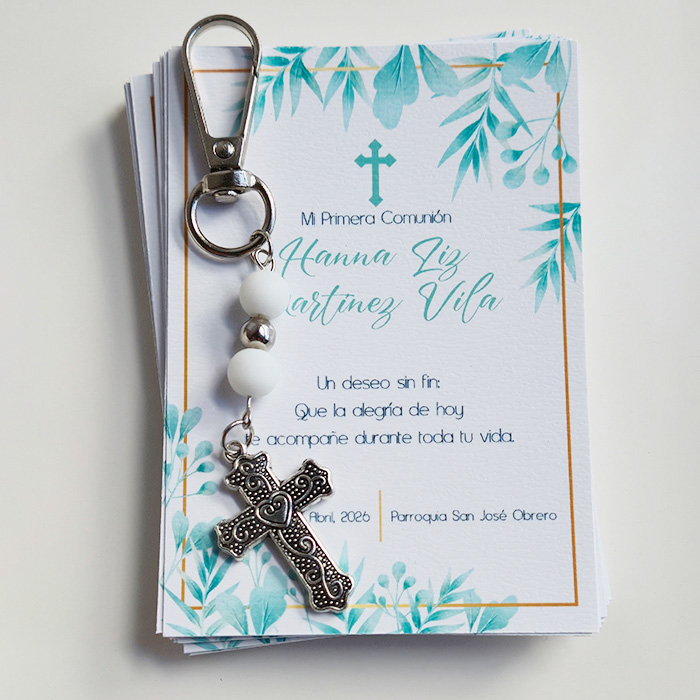 Se entregan en bolsita transparente individual (1 estampita + 1 llavero)